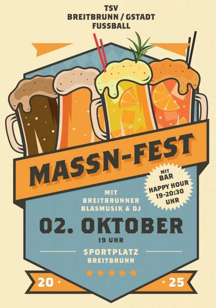 Die Abteilung Fußball lädt ein zum 3.Maßn-Fest! Ob Jung oder Alt, wir freuen uns auf Euch. Mit Bewirtung und beheiztem Zelt!